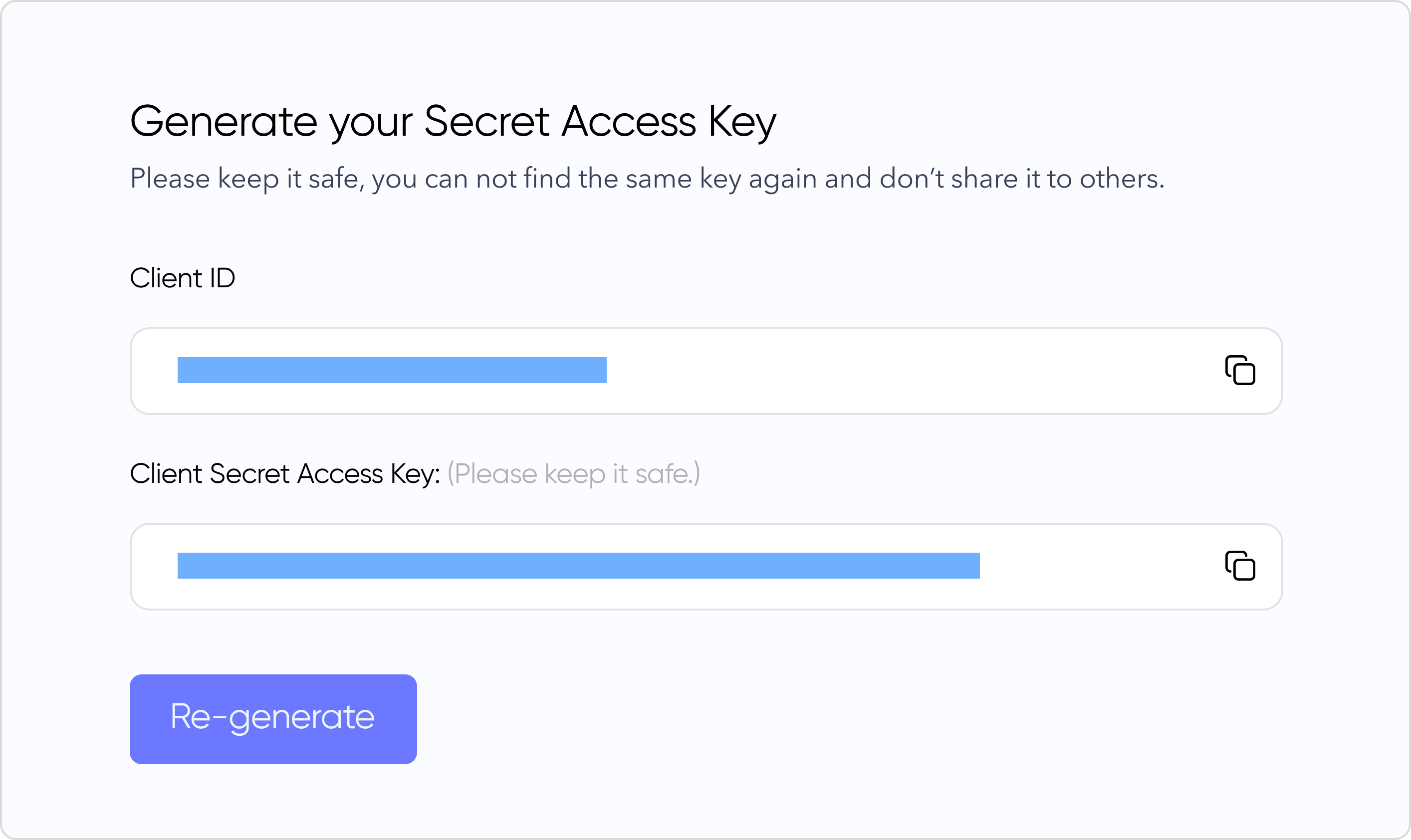 The client secret must be kept secure. Do not share it publicly. The Omnia team will never ask you for your client secret.
